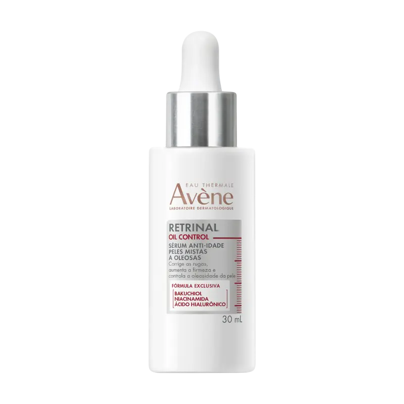 Retrinal Oil Control é um sérum antirrugas com ação antioleosidade possui uma fórmula exclusiva para rugas, perda firmeza e densidade, e controle da oleosidade. A combinação exclusiva de ativos reduz a oleosidade e deixa a pele com aparência mais jovem.A fórmula vegana com 93% de ingredientes de origem natural é composta principalmente por Bakuchiol, um ativo natural com efeito retinóide-like de alta segurança e tolerabilidade, atua na correção de rugas e na renovação da pele; pela Niacinamida que auxilia no controle da oleosidade, além de fortalecer a barreira cutânea e uniformizar o tom da pele; pelo Ácido Hialurônico, em um complexo de alto e baixo pelo molecular que permite maior penetração na pele, preenche e promove uma hidratação de longa duração; e pela Água Termal de Avène, que acalma, suaviza e reequilibra a pele. O produto deve ser aplicado pela manhã e/ou a noite, e os resultados são visíveis desde o primeiro uso.
